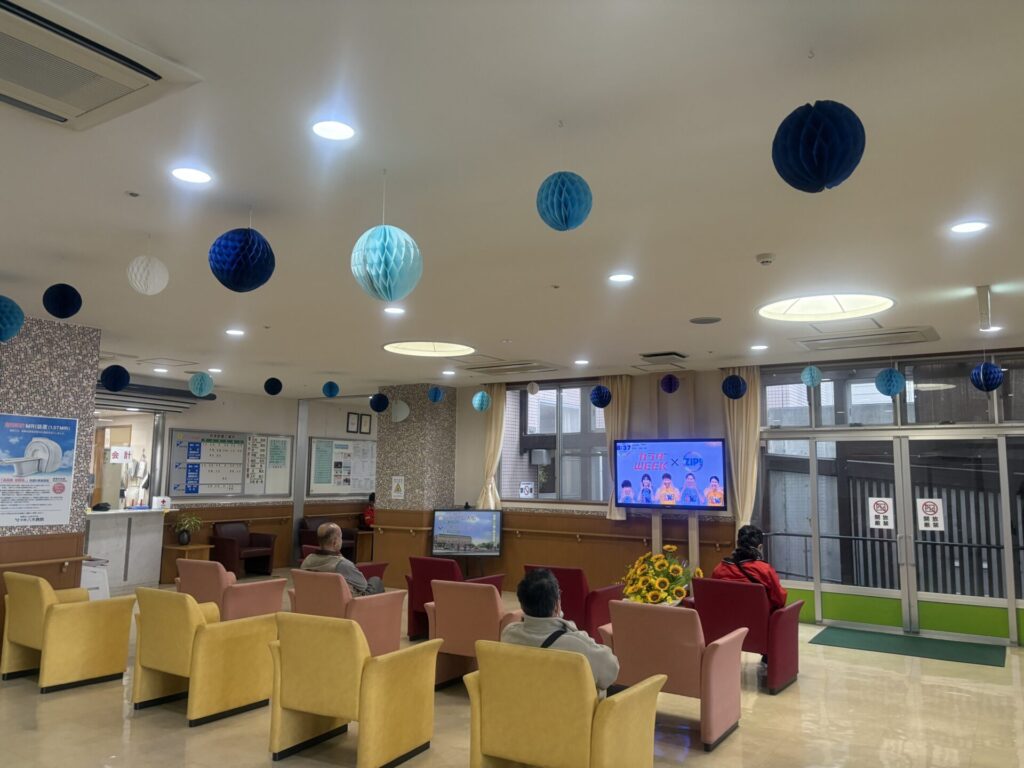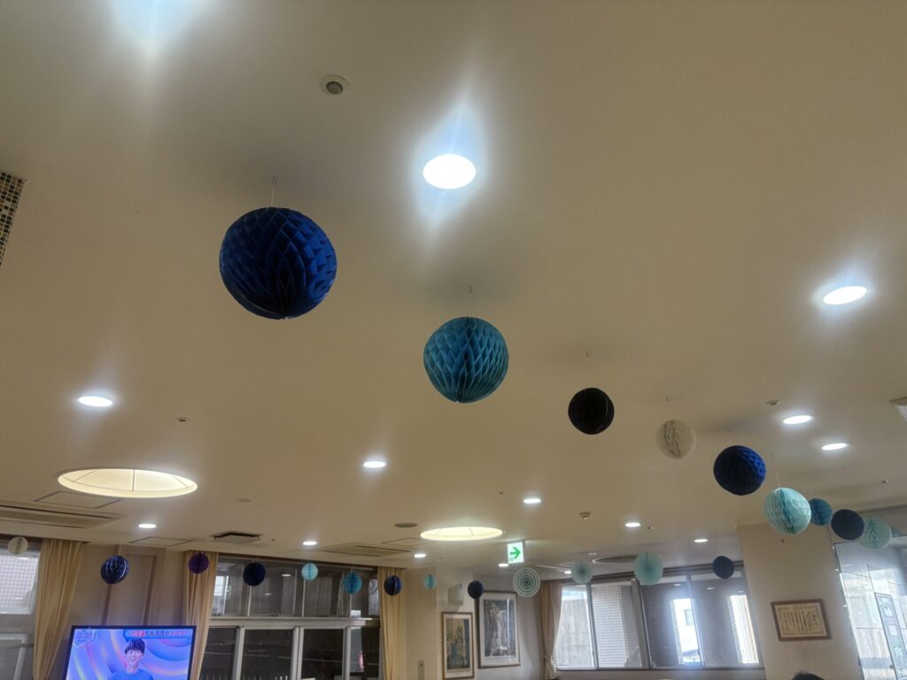 当院でも病院正面をブルーライトアップし、待合室にはブルーを意識した飾り付け、救急入口にブルーサークルの電飾など啓発運動ををしています。