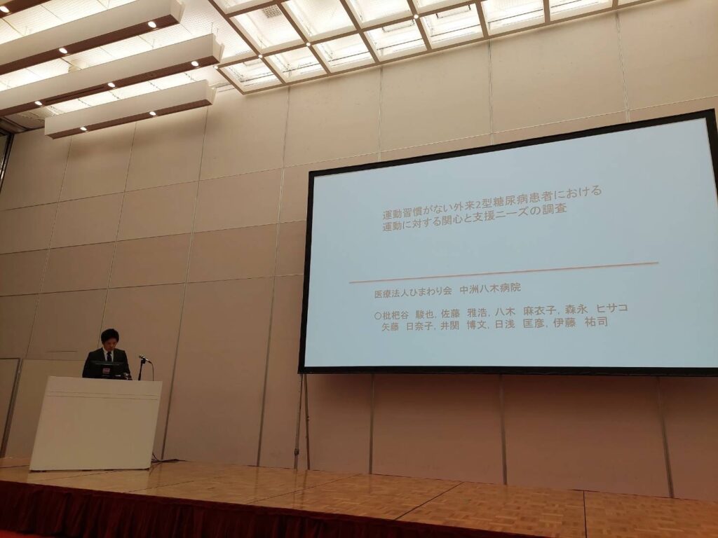 そんななか、令和7年10月31日~11月1日 愛媛県で開催された、日本糖尿病学会 中四国地方会第63回総会 で理学療法士の枇杷谷さん(日本糖尿病療養指導士)が発表してくれました。