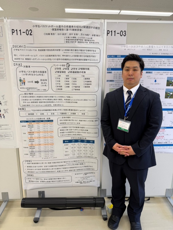 今回の発表は小学生バスケットボール選手を調査し、「怪我なく競技を続けていけるように」の思いを込めた日頃の研究を全国学会の場で発表してきてくれました。